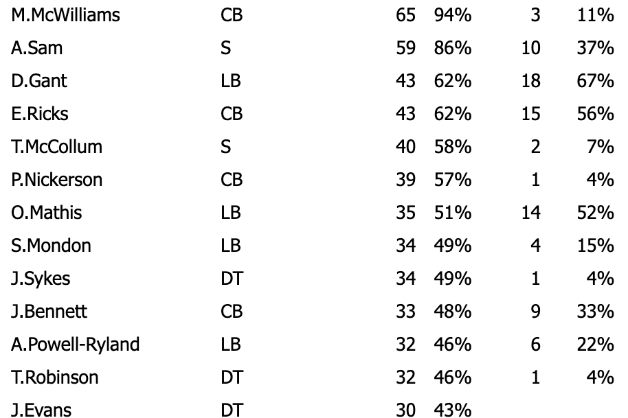 Jakorian Bennett allowed multiple receptions despite playing less than half of the game. He did play tight coverage.