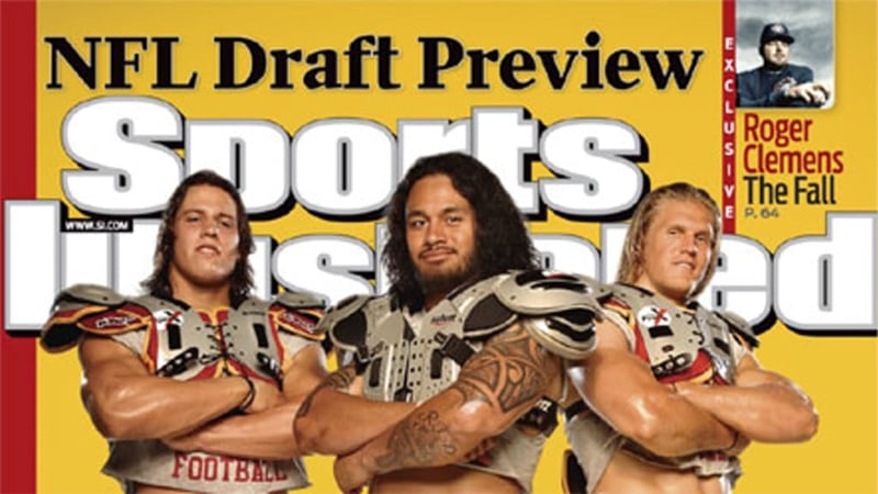 Rey Maualuga’s SI cover with USC teammates Brian Cushing, left, and Clay Matthews III, right (Photo courtesy SI)
