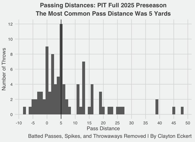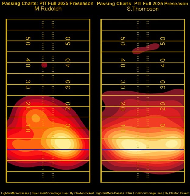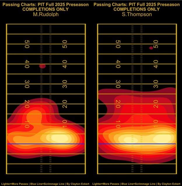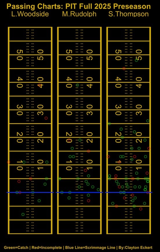 Today, I wanted to share my Pittsburgh Steelers quarterback passing locations for the full 2025 preseason.