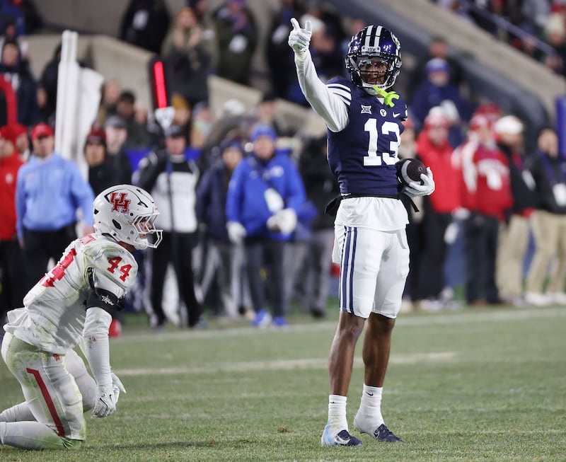 BYU receiver Jojo Phillips gets a first down against Houston in Provo on Saturday, Nov. 30, 2024. | Jeffrey D. Allred, Deseret News