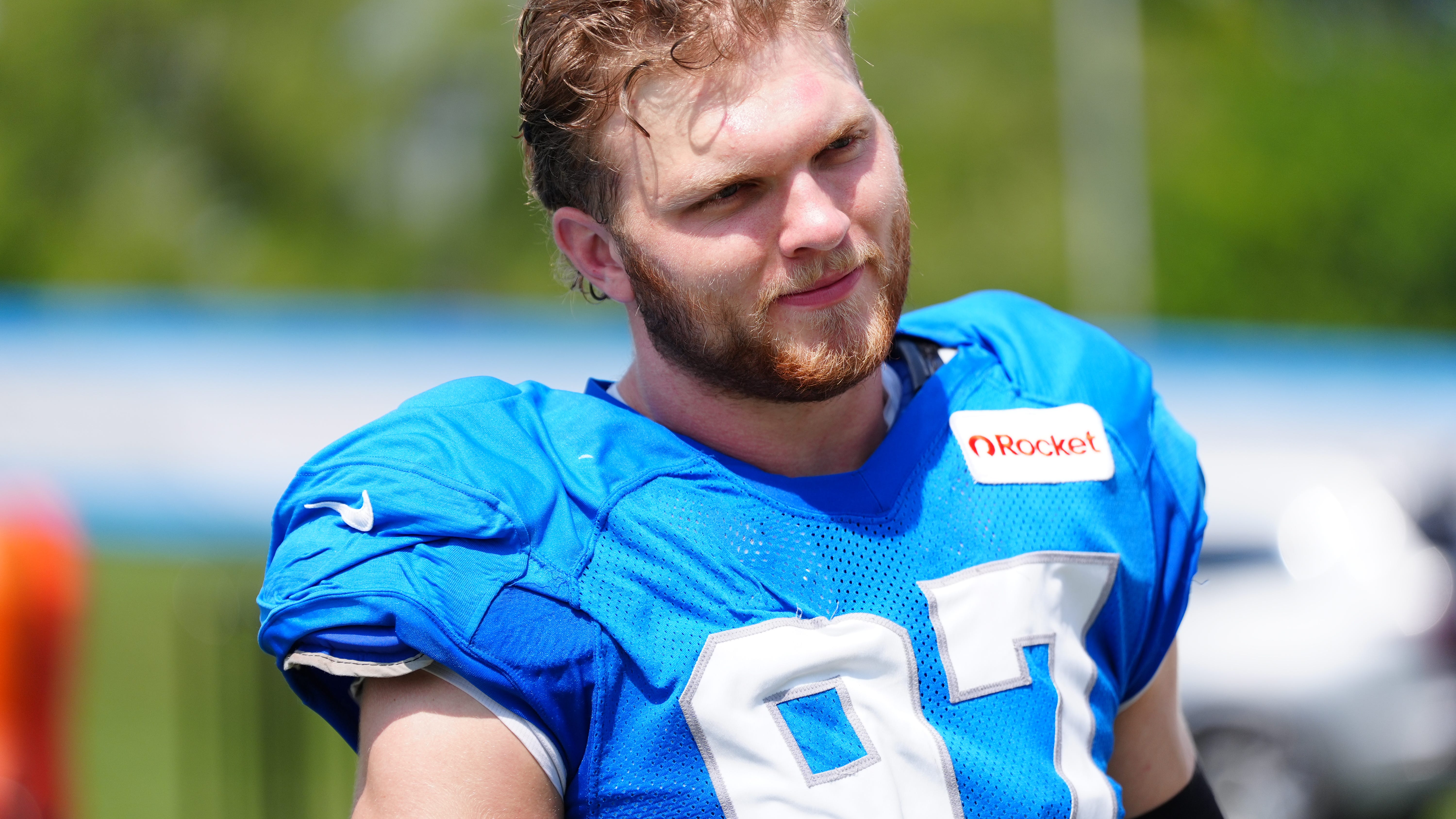 Aidan Hutchinson talks about a recent play in Lions practice that gave him confidence his leg is recovered from last season’s injury, Aug. 21, 2025.