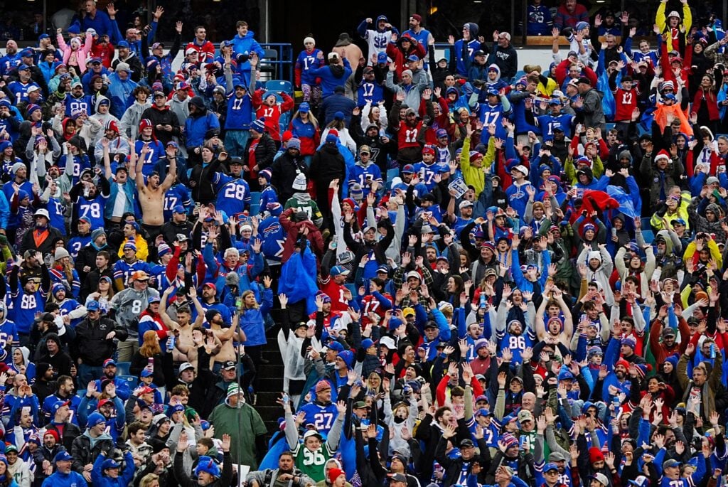 Fans do several rounds of the wave during second half action at the Bills home game against the New York Jets at Highmark Stadium in Orchard Park on Dec. 29, 2024.