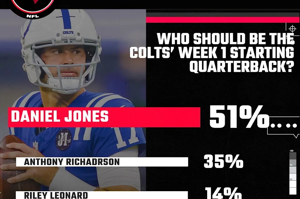 Somewhat surprisingly, 51% of Colts fans here actually agreed with 3rd-year head coach Shane Steichen’s controversial decision to name Jones as his new starter over Richardson.