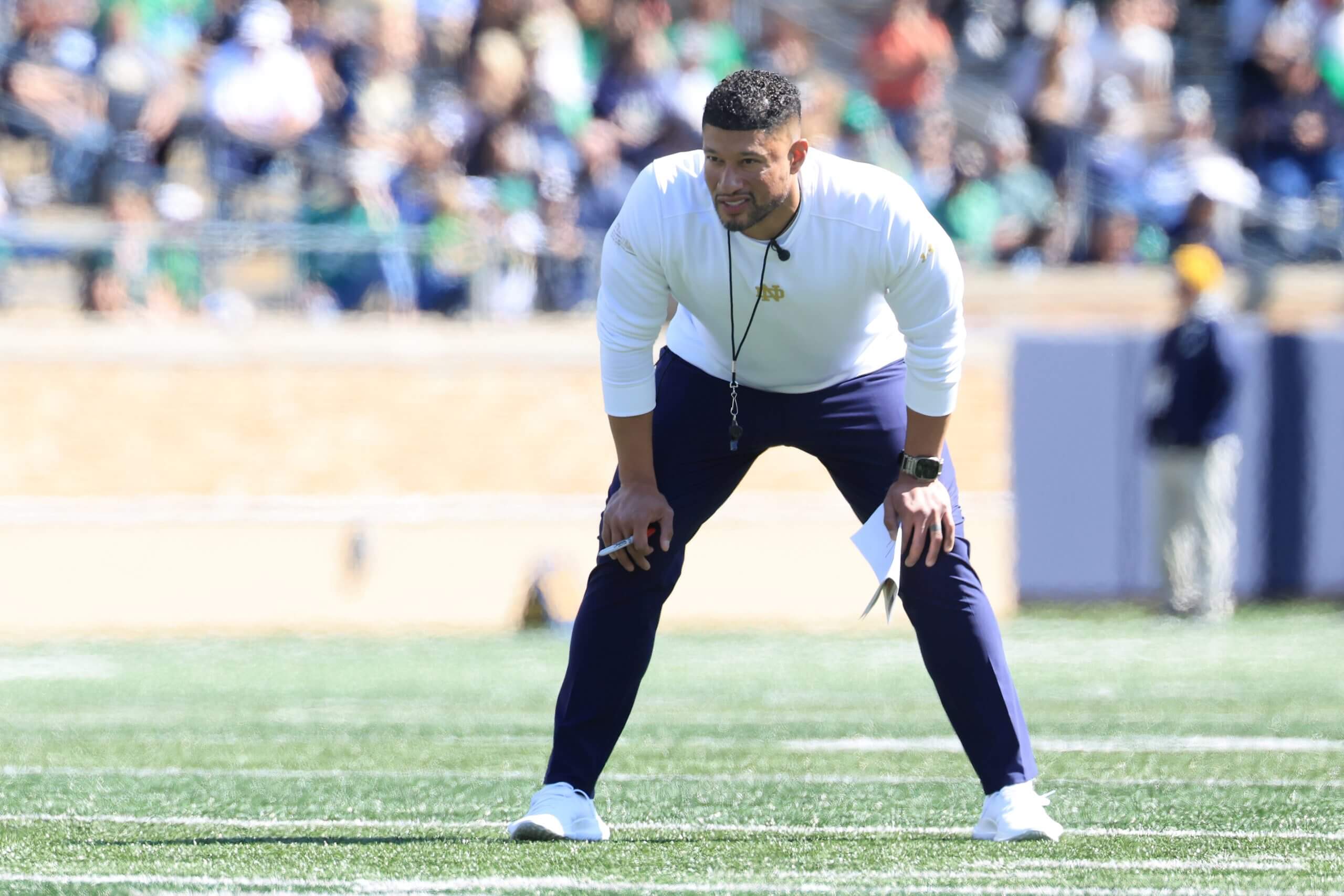 Arteta’s face was on a billboard outside Stamford Bridge before Chelsea hosted Fulham in the Premier League on Saturday, with the words “every artist has their critics” and “be the problem” on the advert. The Arsenal manager, and France and Liverpool central defender Ibrahima Konate, have joined a list of footballers at Under Armour like Arsenal and United States women’s national team player Emily Fox, Paris Saint-Germain and Morocco right-back Achraf Hakimi, Real Madrid and Germany defender Antonio Rudiger, and Spanish duo Ferran Torres (Barcelona) and Pedro Porro (Tottenham). The brand also works with Notre Dame head coach Marcus Freeman (pictured below), a nod to its roots in college (American) football.