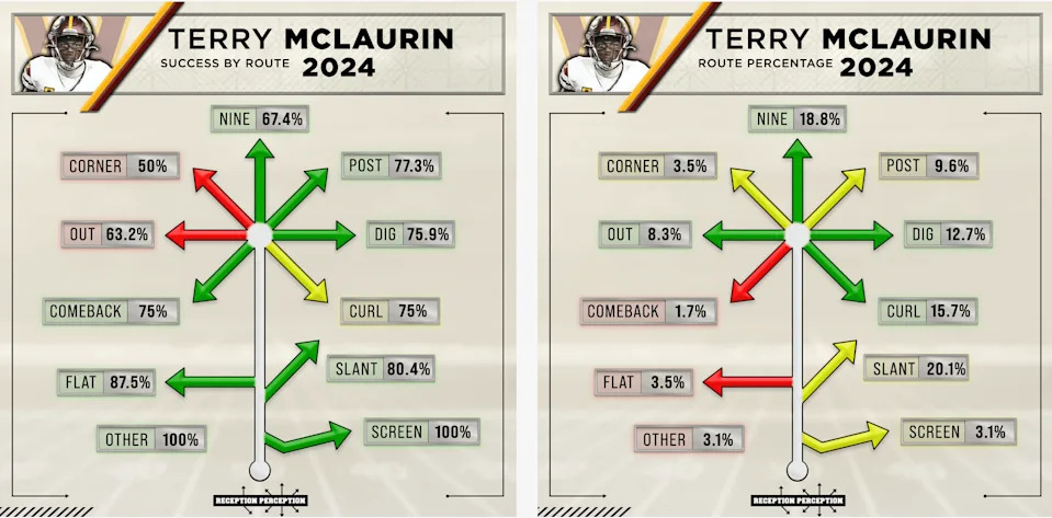 Here are McLaurin’s route statistics last season, from Reception Perception: