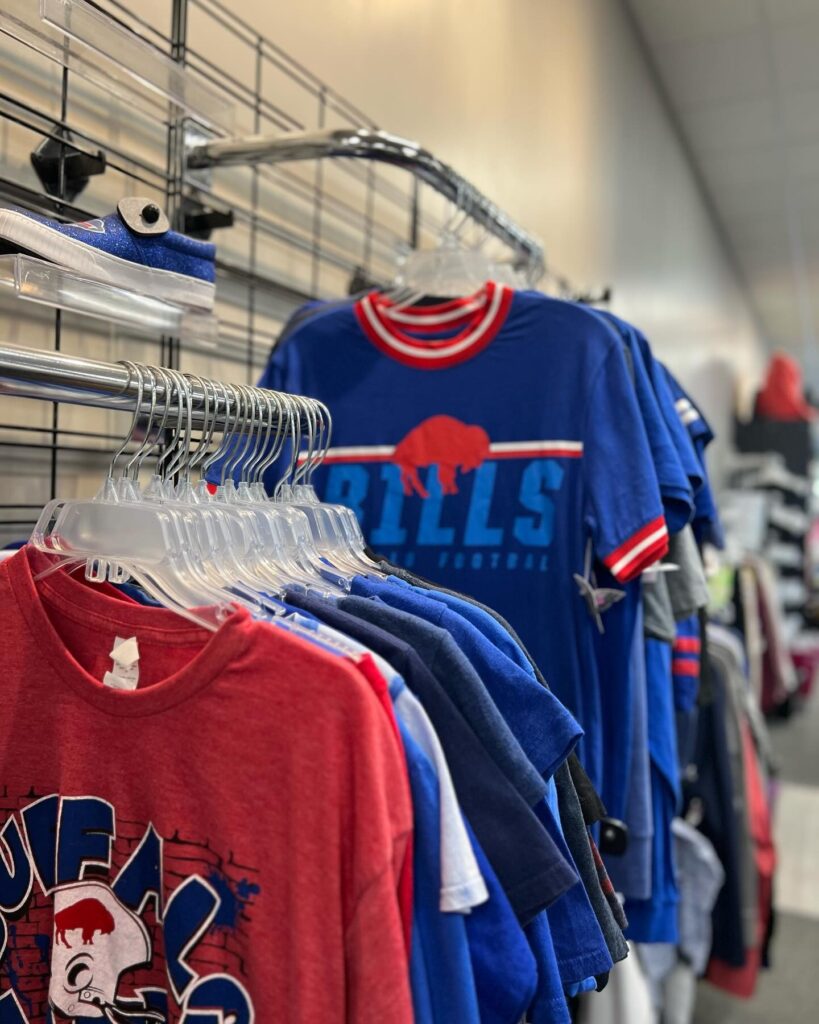 That’s because Clothes Mentor is hosting their Annual Bills Drop, and it is major. Think: hundreds of Bills-themed hoodies, crewnecks, tees, leggings, and more.Â