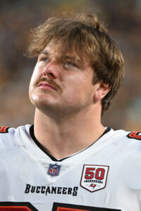 Right guard Cody Mauch will be in a similar situation as Goedeke next offseason, after having finished his third year of play, then it will be center Graham Barton the year after that. Barton, a first-rounder last year, would technically have a fifth-year option available to push back any possible deadline on extensions, but with the way offensive linemen are priced the same regardless of position in fifth-year option formulas, centers hardly see those options exercised.