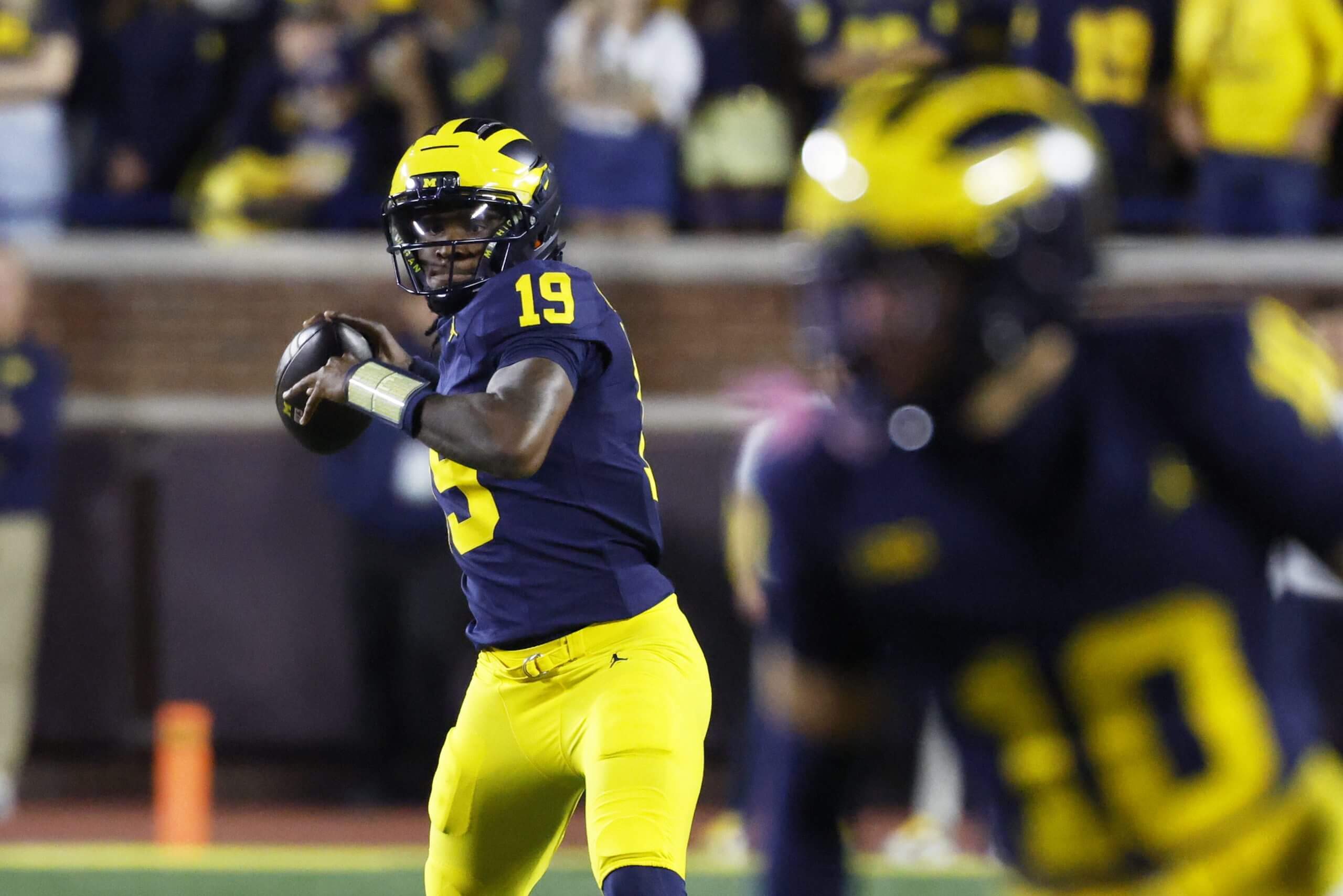 Underwood threw for 251 yards and a TD in his Michigan debut. (Rick Osentoski / Imagn Images)
