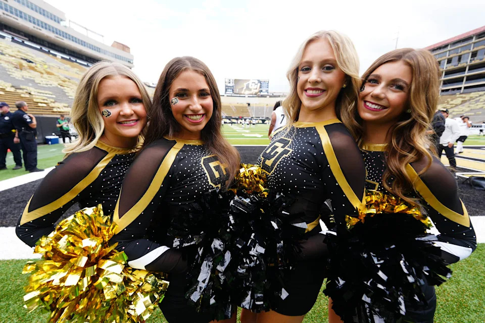 Aug. 29: Colorado Buffaloes cheerleaders pose for a picture before the game against Georgia Tech at Folsom Field.