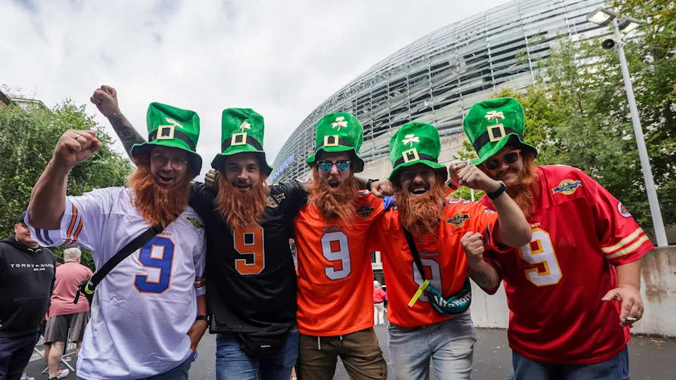 Aug. 23: College football fans arrive before the Aer Lingus Classic between Iowa State and Kansas State at Aviva Stadium in Dublin, Ireland.