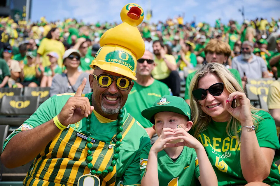 Aug. 30: Oregon football fans show their support before the game against at Autzen Stadium.