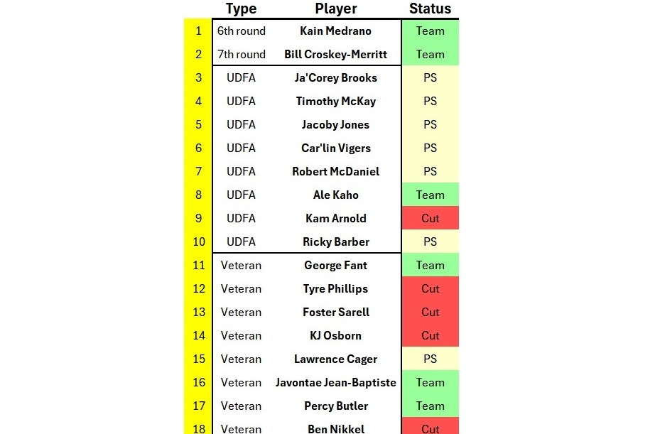 The winner of the 2025 Roster Prediction Contest is Boogieman, who scored an impressive total of 90 points out of a possible 112, correctly predicting the status of 15 out of 18 players. His biggest ‘miss’ was on Ale Kaho, the undrafted rookie who made the 53-man roster.