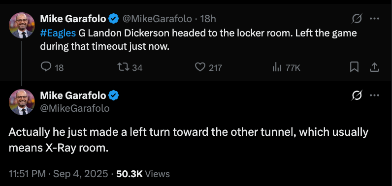 Brown had a limited defensive role as the Eagles’ safety in base defense snaps with Mukuba being the safety in nickel packages. Brown also got banged up at one point, though he managed to finish the game. Just feels like a matter of time until Mukuba completely overtakes him.