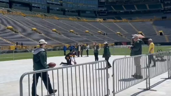 She lines up to kick field goal at Lambeau Field, but it’s a proposal