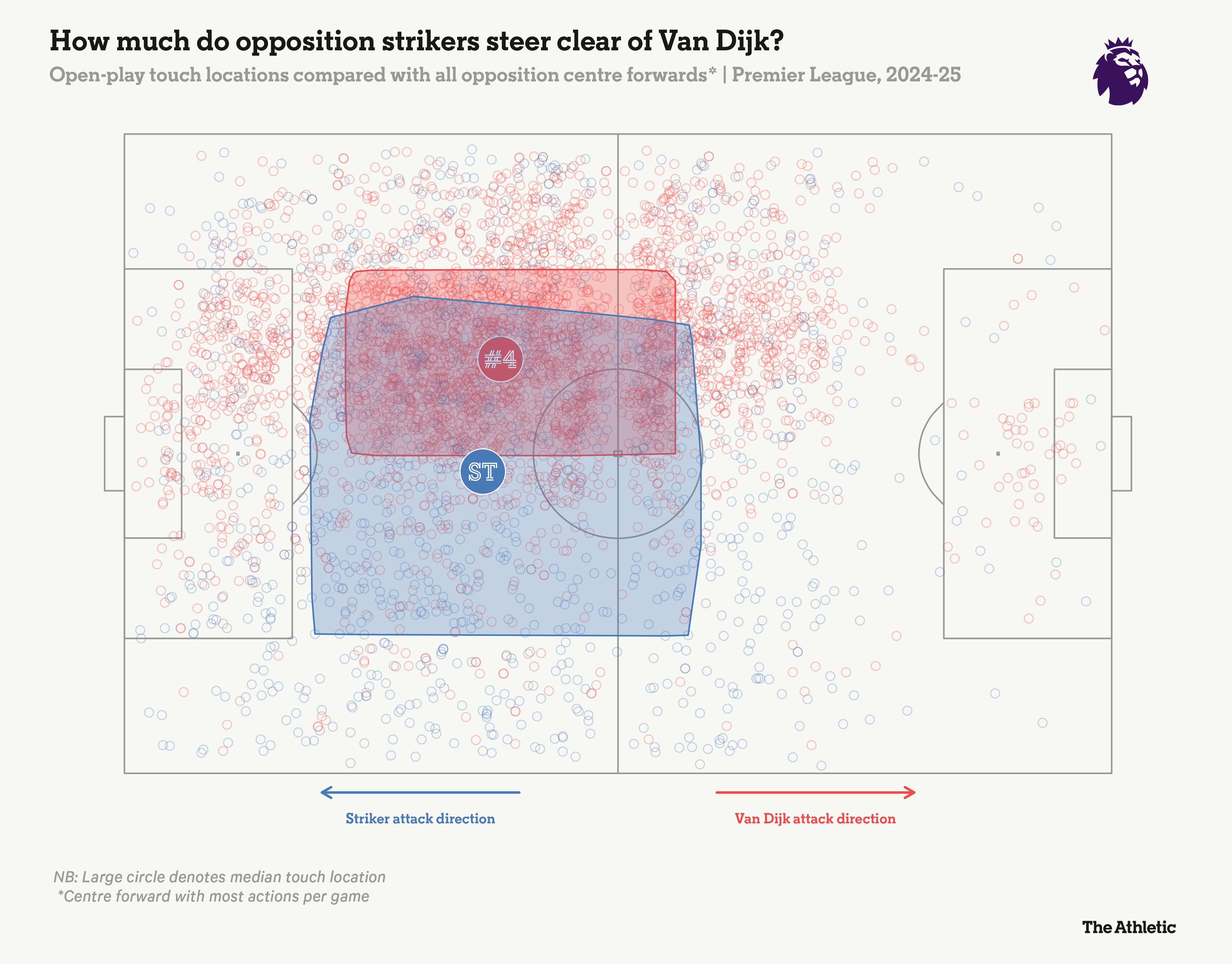 The 33-year-old Netherlands captain is about to lead Liverpool to the Premier League title and has just signed a new contract. The graph below shows that his defensive prowess leads opposition players to avoid him, meaning he does not have to do as much defending or top many defensive categories.