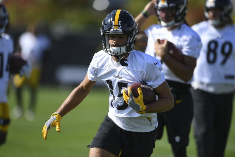 Pittsburgh Steelers wide receiver Cody White (15) participates in the Organized Team Activities (OTAs), Thursday June 10, 2021 at the UPMC Rooney Sports Complex. (Karl Roser / Pittsburgh Steelers)