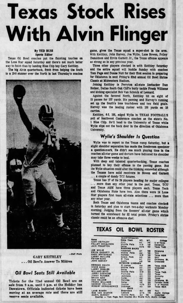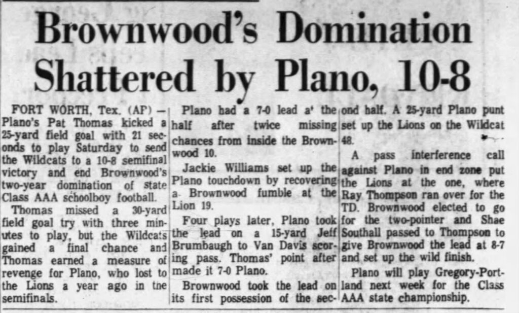 Below, you can see that Thomas also knew how to kick a ball. The clipping notes that he kicked a game-winning 25-yard field goal in the ’71 AAA state semifinals with just :21 seconds to play.