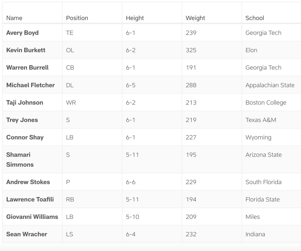 Most of these signings were reported in the media in the hours and days following the NFL Draft, but this is official confirmation from the team. Occasionally reporters will miss a signing, or something changes before a contract becomes official.