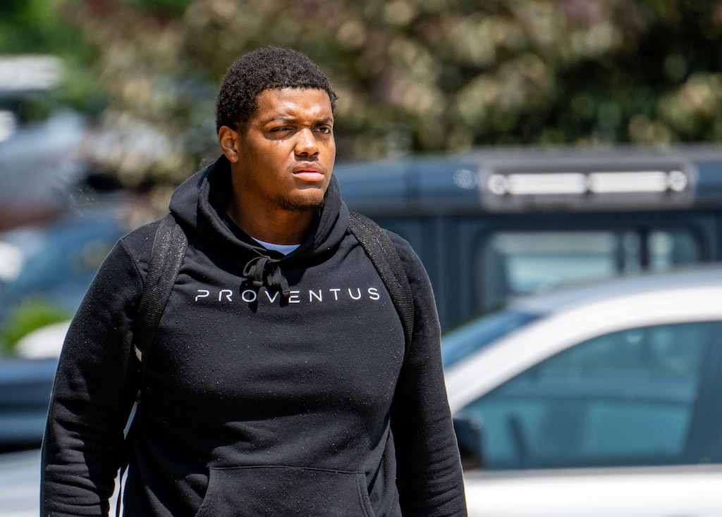 Carson Vinson arrives at the Ravens training facility for the first day of training camp in June. (Jerry Jackson/The Baltimore Banner)