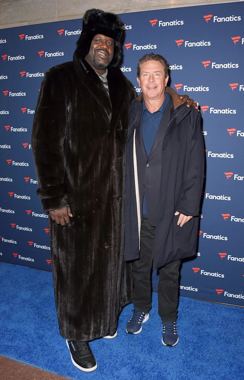 Former NBA player Shaquille O’Neal and former NFL player Dan Marino appear at the Fanatics Super Bowl Party on Feb. 3, 2018, in Minneapolis.