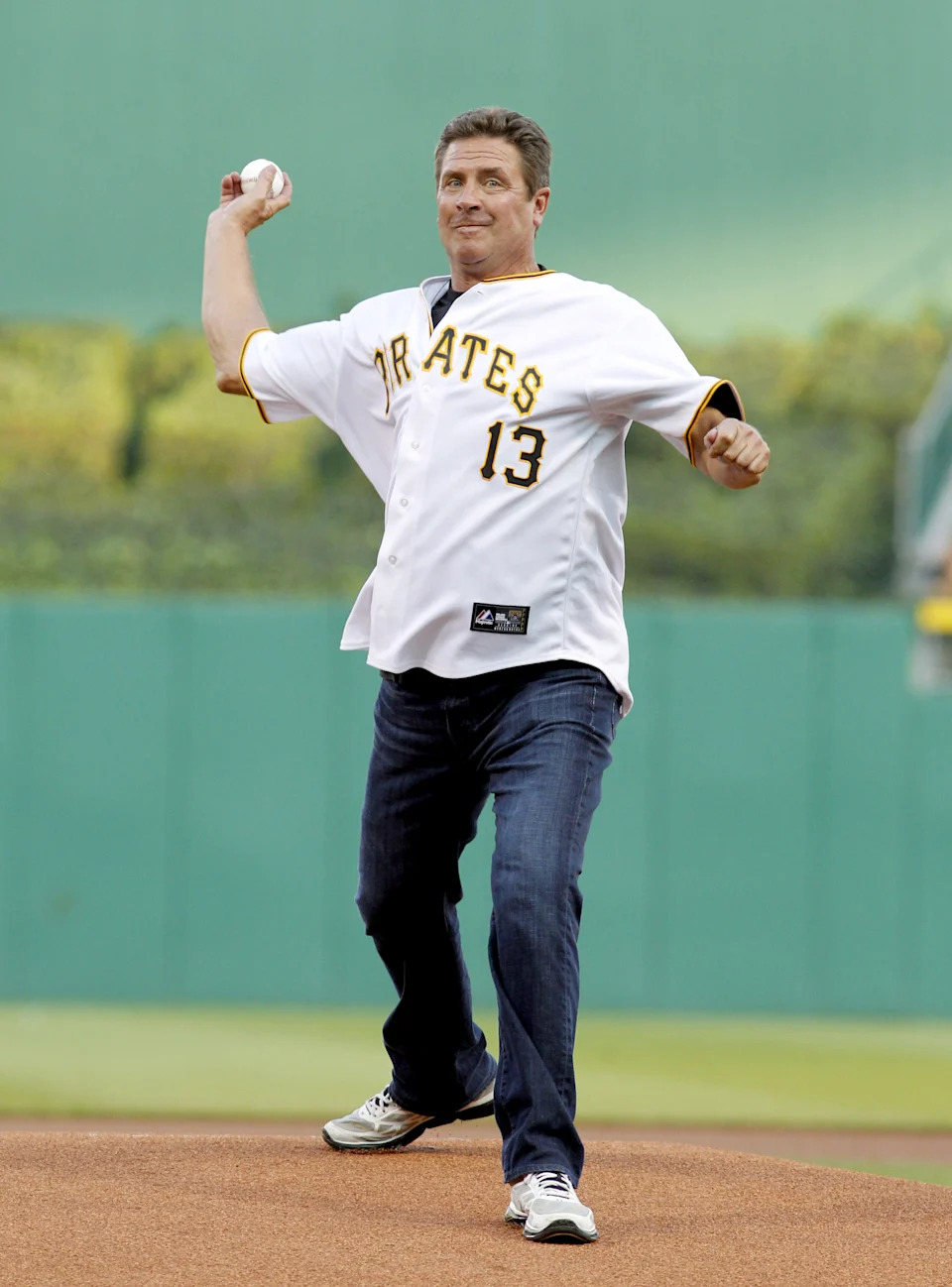 Dan Marino throws out a ceremonial first pitch before the Pittsburgh Pirates host the Milwaukee Brewers at PNC Park on Aug. 29, 2013.