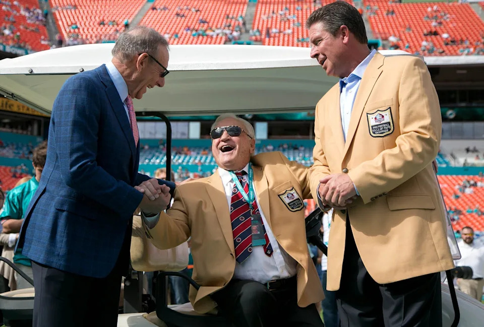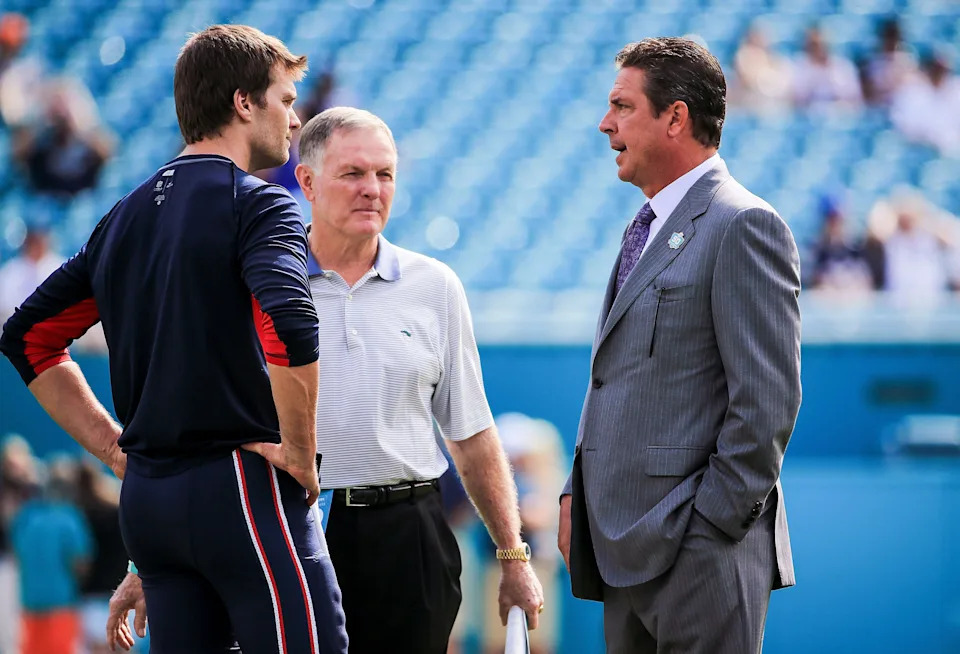 Miami Dolphins owner Stephen Ross with Don Shula and Dan Marino before a game at Sun Life Stadium in Miami Gardens, Florida, on Dec. 21, 2014.