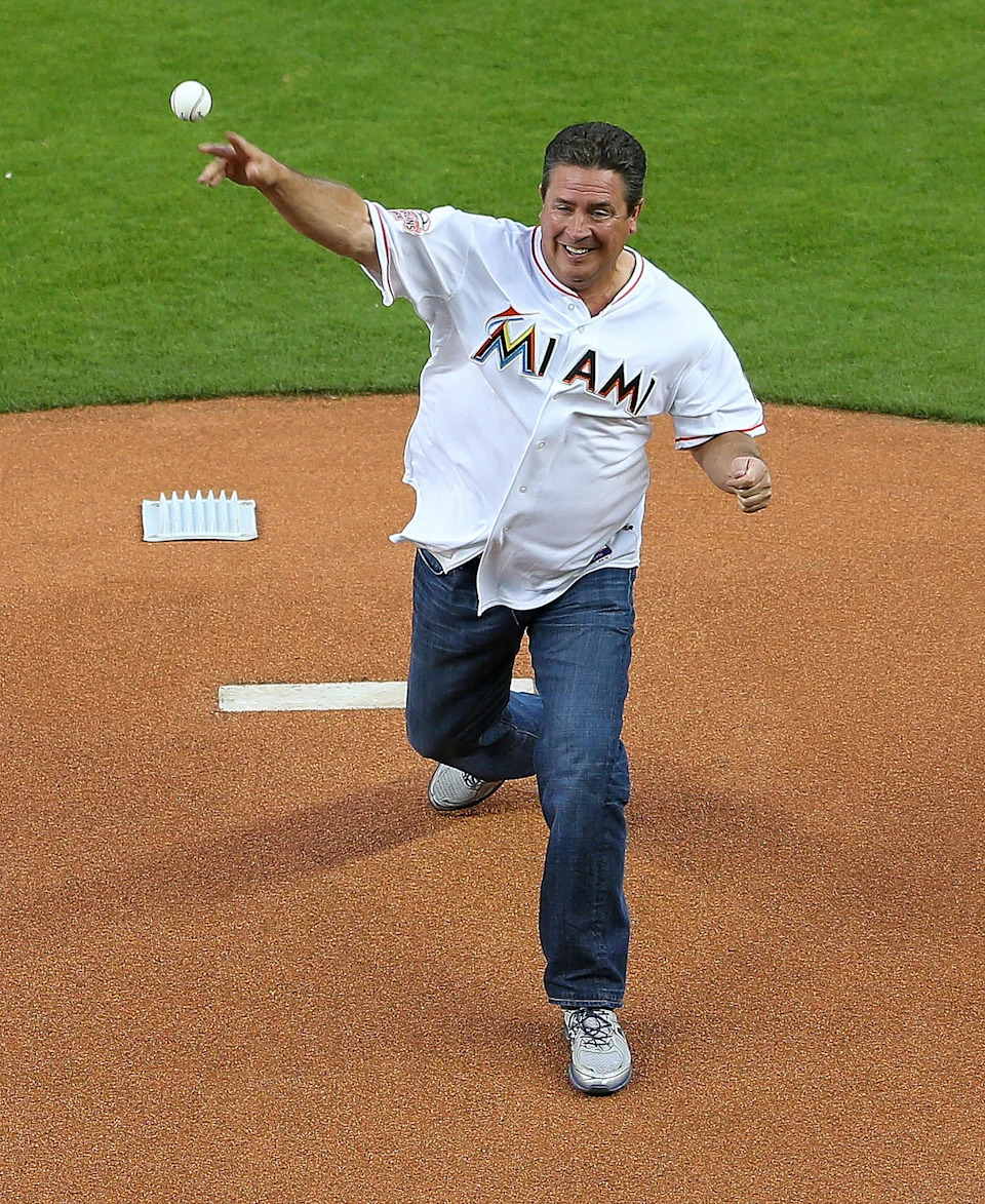 Dan Marino throws out the first pitch during MLB Opening Day between the Miami Marlins and the Colorado Rockies at Marlins Park on March 31, 2014, in Miami.