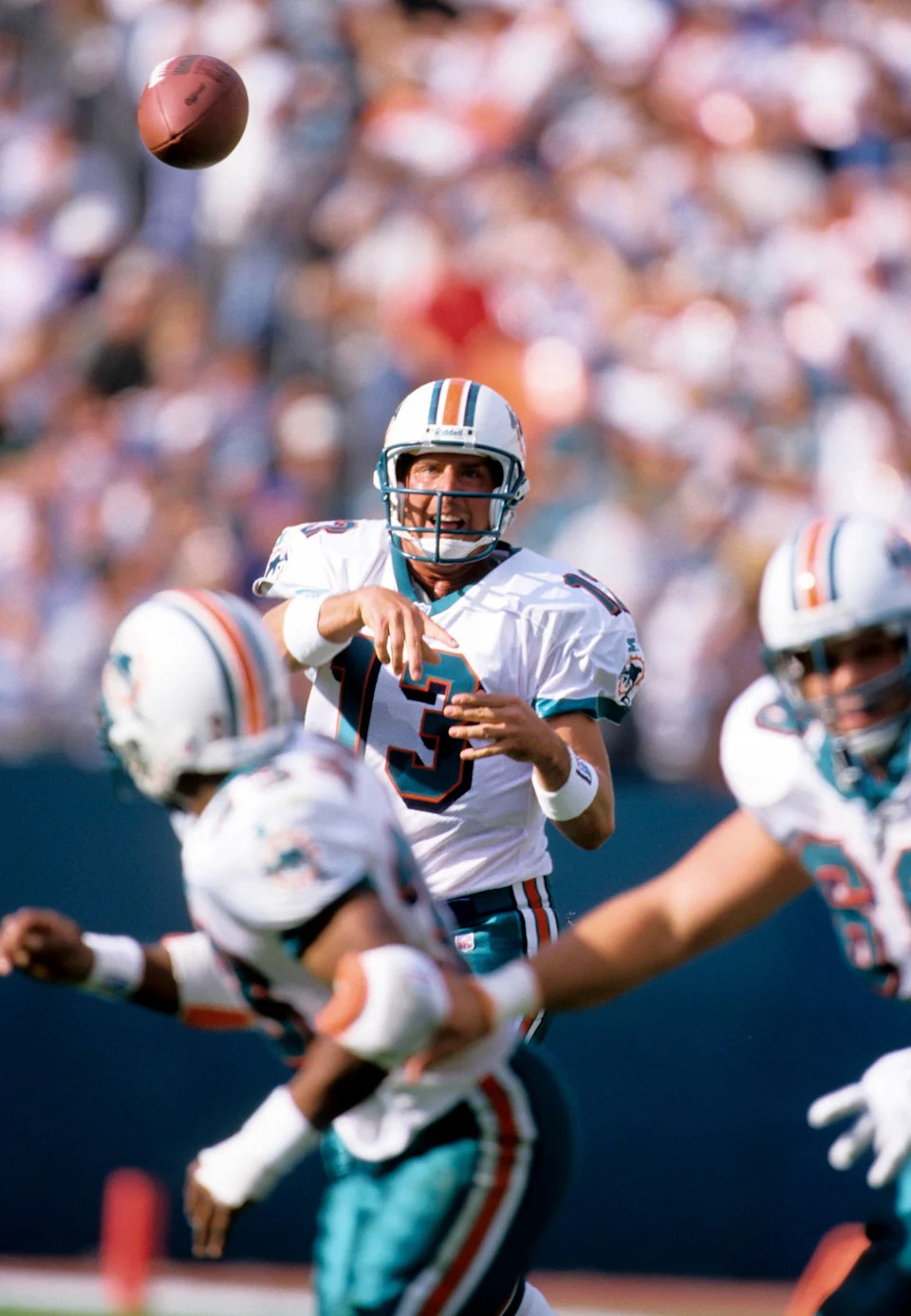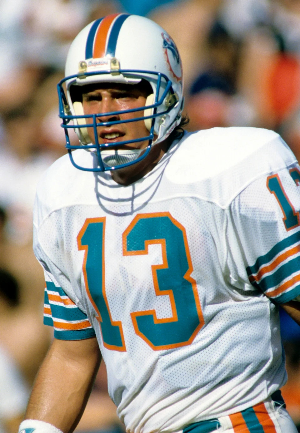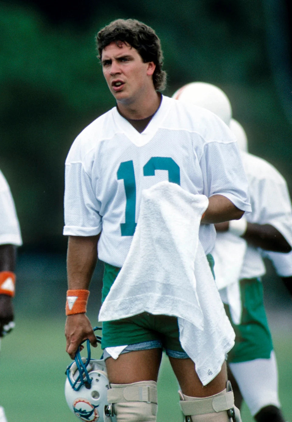 Miami Dolphins quarterback Dan Marino during July 1984 training camp at St. Thomas University. Marino would go on to win the 1984 NFL MVP award after posting career-highs of 48 touchdowns and 5,084 yards passing.