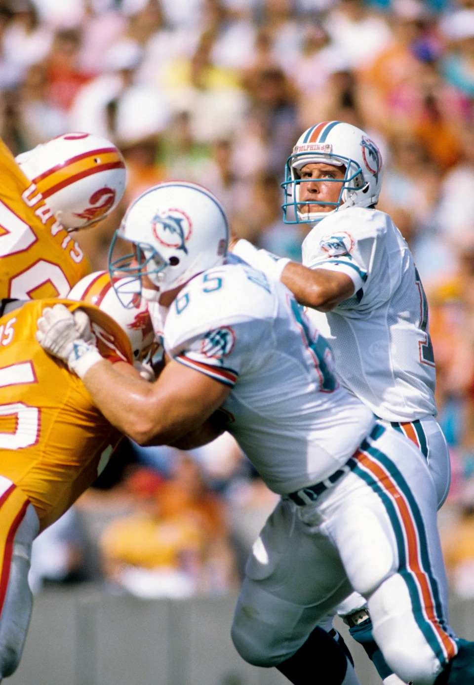 Miami Dolphins quarterback Dan Marino in action against the Tampa Bay Buccaneers at Tampa Stadium on Oct. 30, 1988.