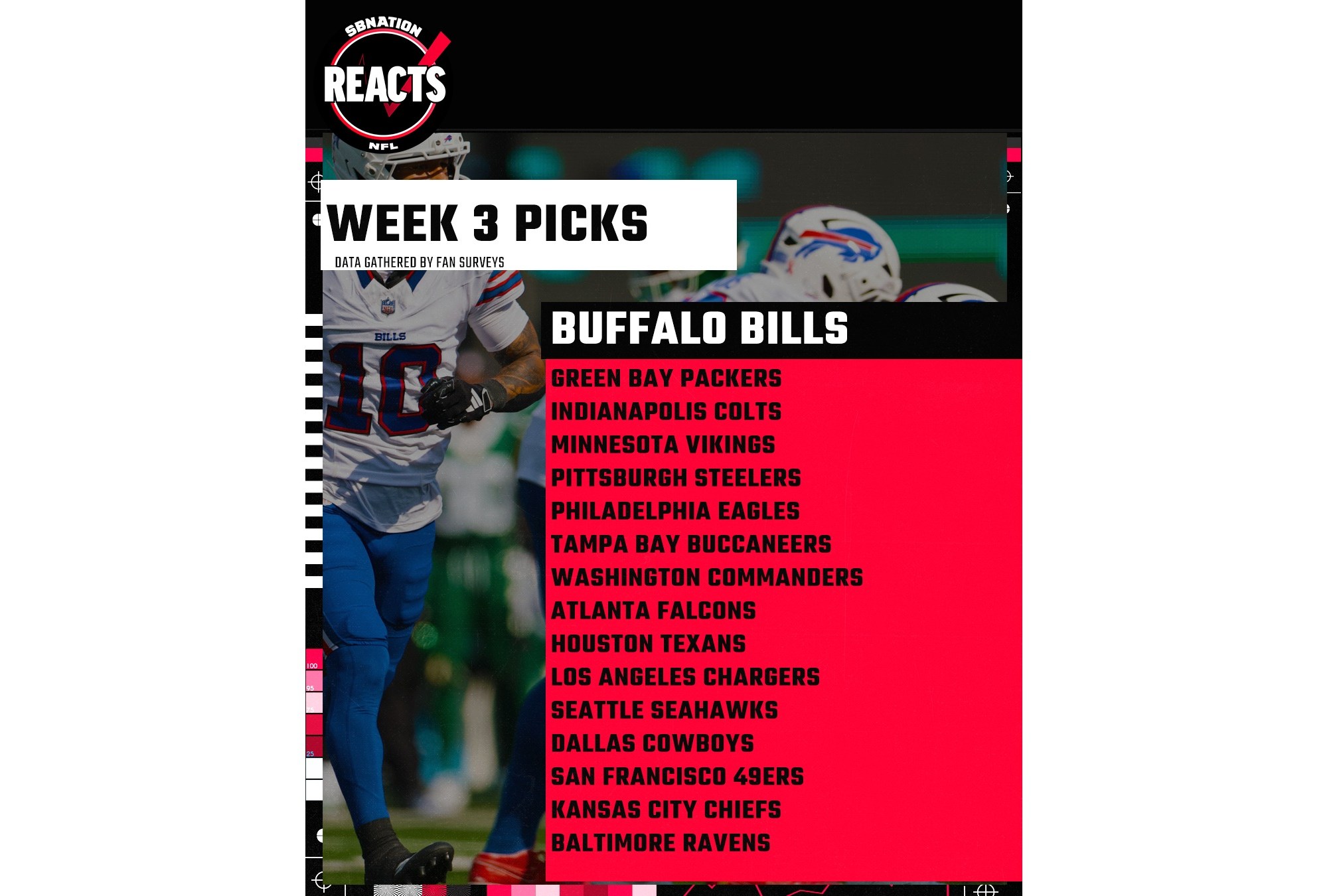 In addition to our site-specific poll, SB Nation conducts weekly email polls with registered participants from all 32 NFL fan bases; in this week’s survey, respondents were asked to pick winners for all of the Week 3 games.
