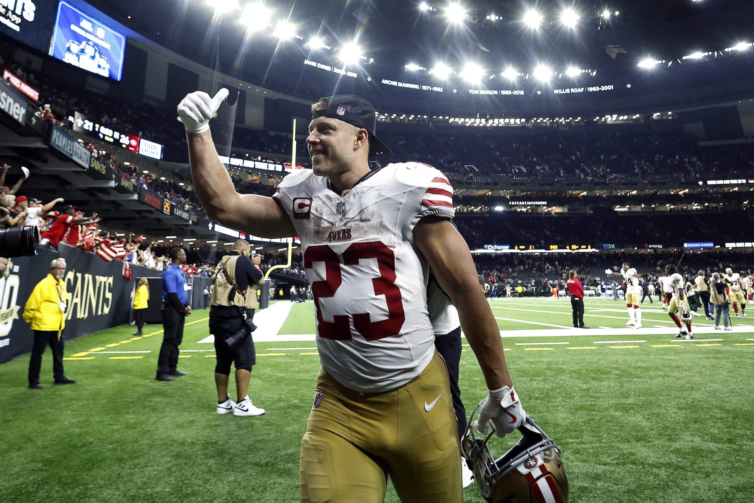 “Getting in and out of cuts, running hard, he’s back to the McCaffrey that we all know,” Purdy said. “And then mentally, he’s on one, like he’s ready to play a whole season and go hard.”