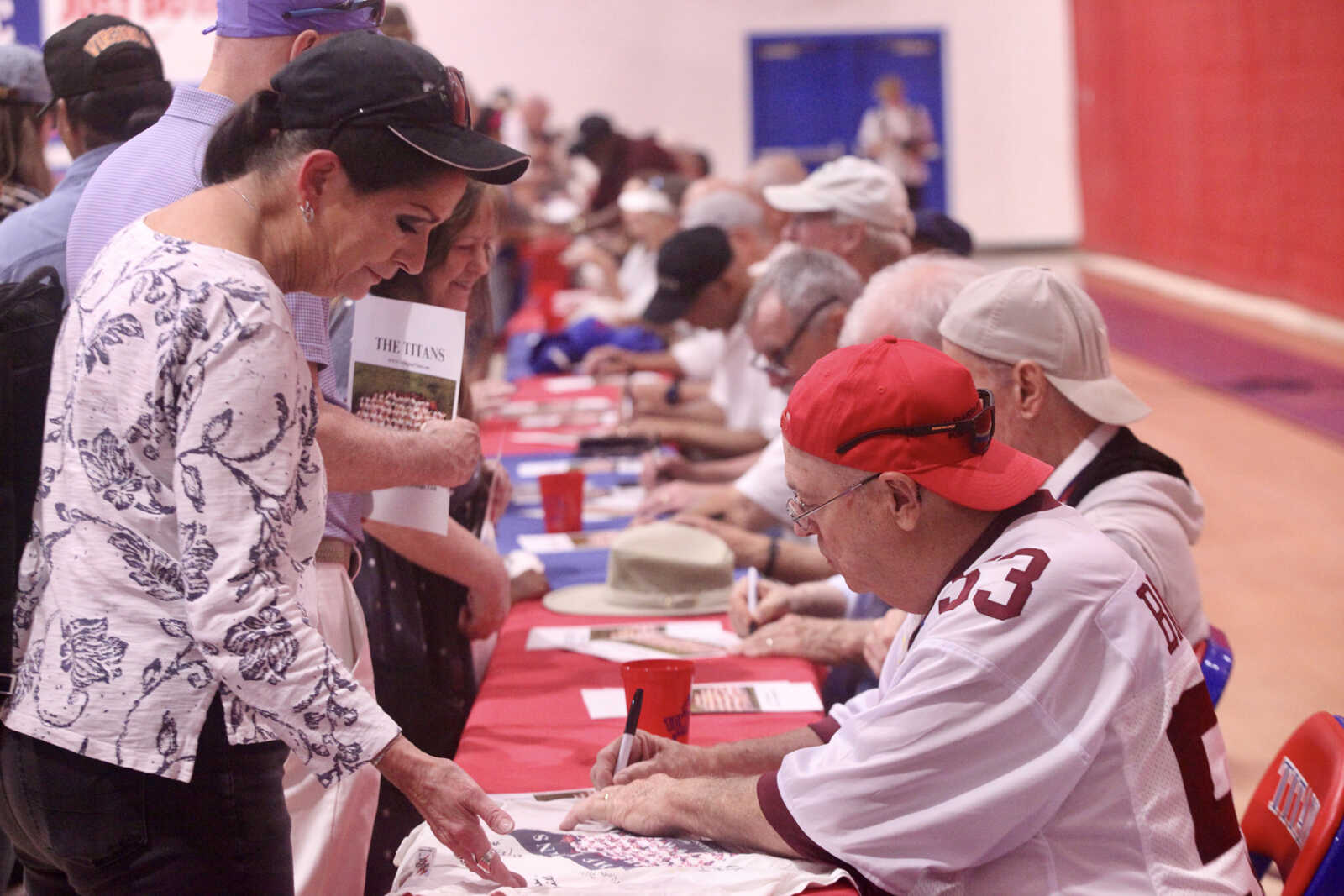 Members of the state championship-winning 1971 T.C. Williams City High School football team sign autographs at the 25th anniversary celebration of the film Remember The Titans, from which the movie is based, Sept. 19, 2025 (staff photo by James Cullum)