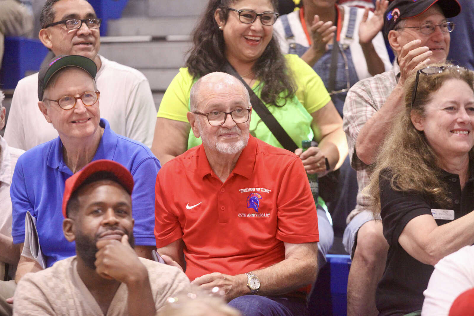 ACPS staff applaud at Alexandria City High School’s 25th anniversary celebration of the film Remember The Titans, Sept. 19, 2025 (staff photo by James Cullum)