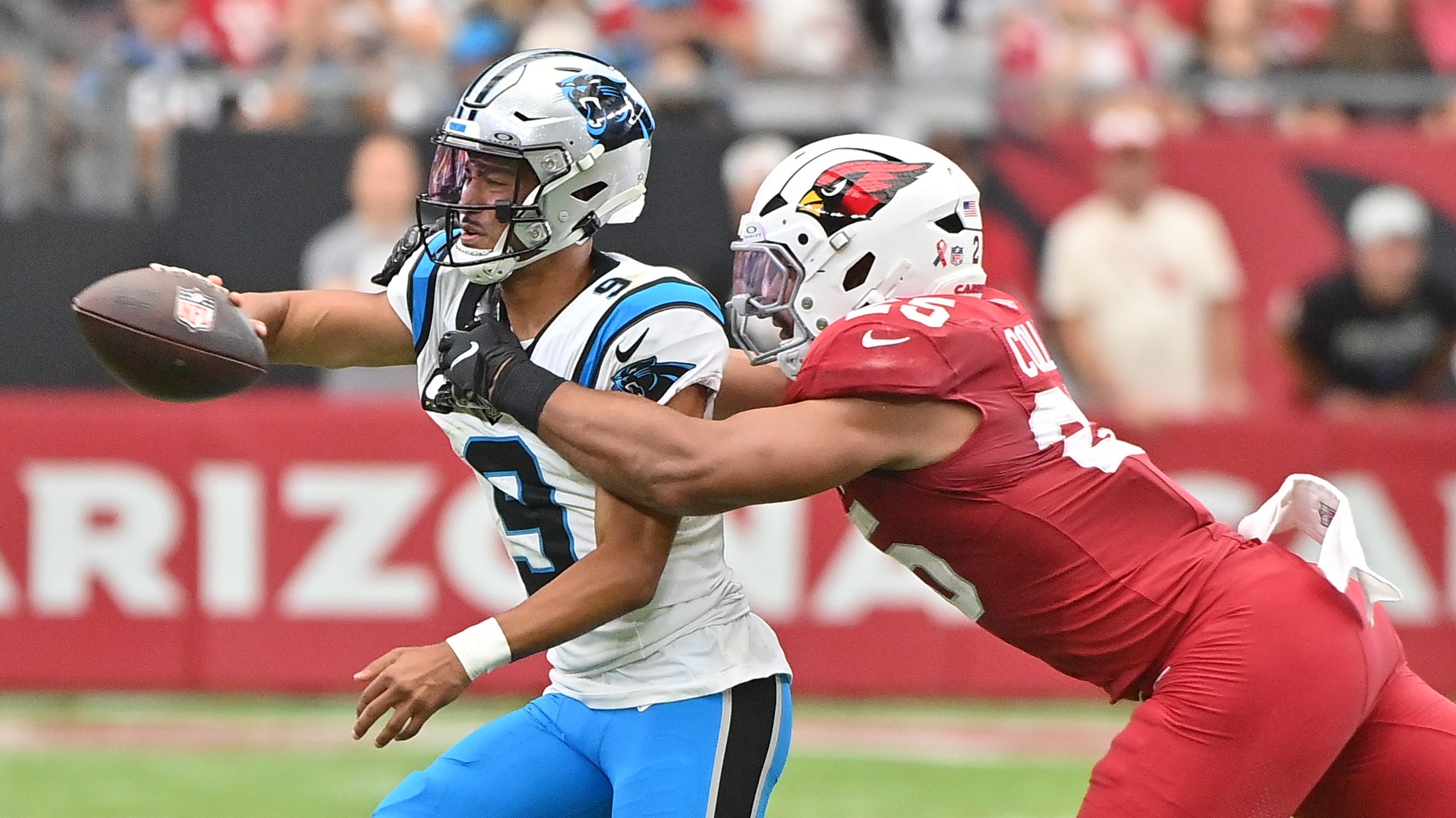 Only this time, it wasn’t so simple. A Carolina Panthers defender, Patrick Jones II, crashed the edge, blew up the play before it began and ripped James Conner to the ground for a three-yard loss. The Cardinals went to the air on third down, couldn’t convert and handed the ball back to the Panthers with their hopes still alive.