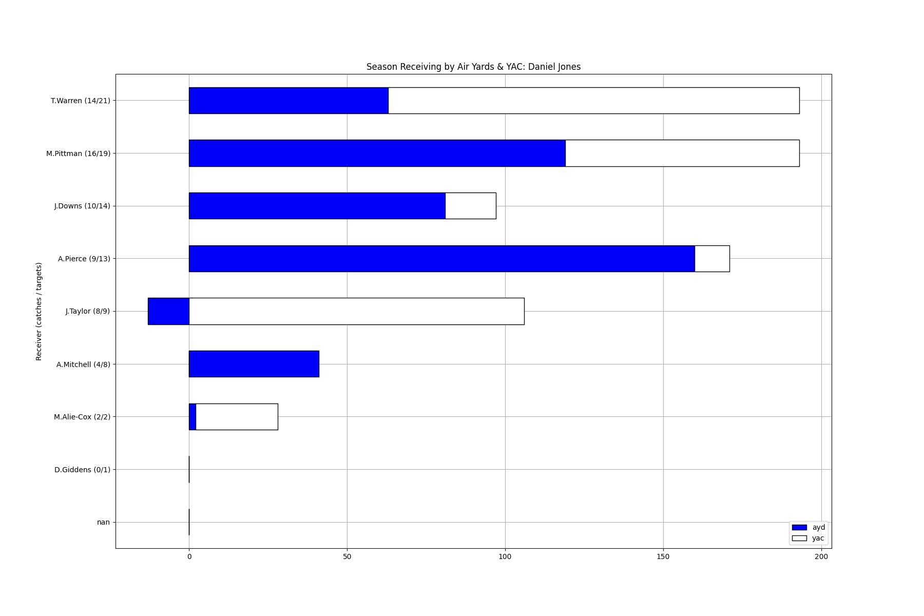 Jones was never known as a strong deep passer before joining the Colts, but now he’s actually performing better on longer throws than on the shorter ones.