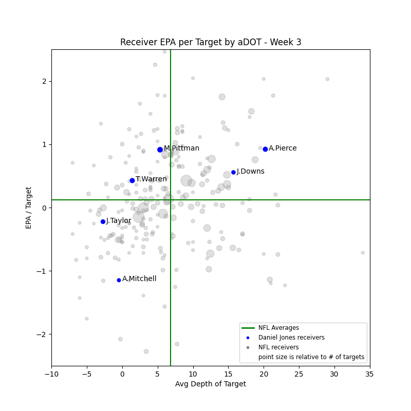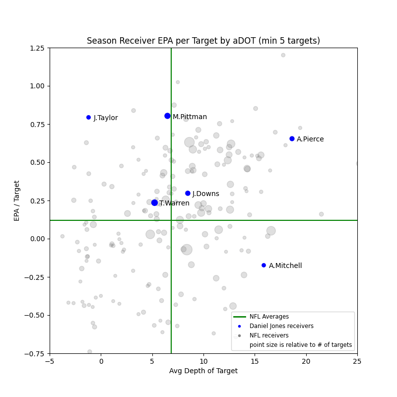 On the season, all the receivers except Mitchell are adding positive EPA per target.