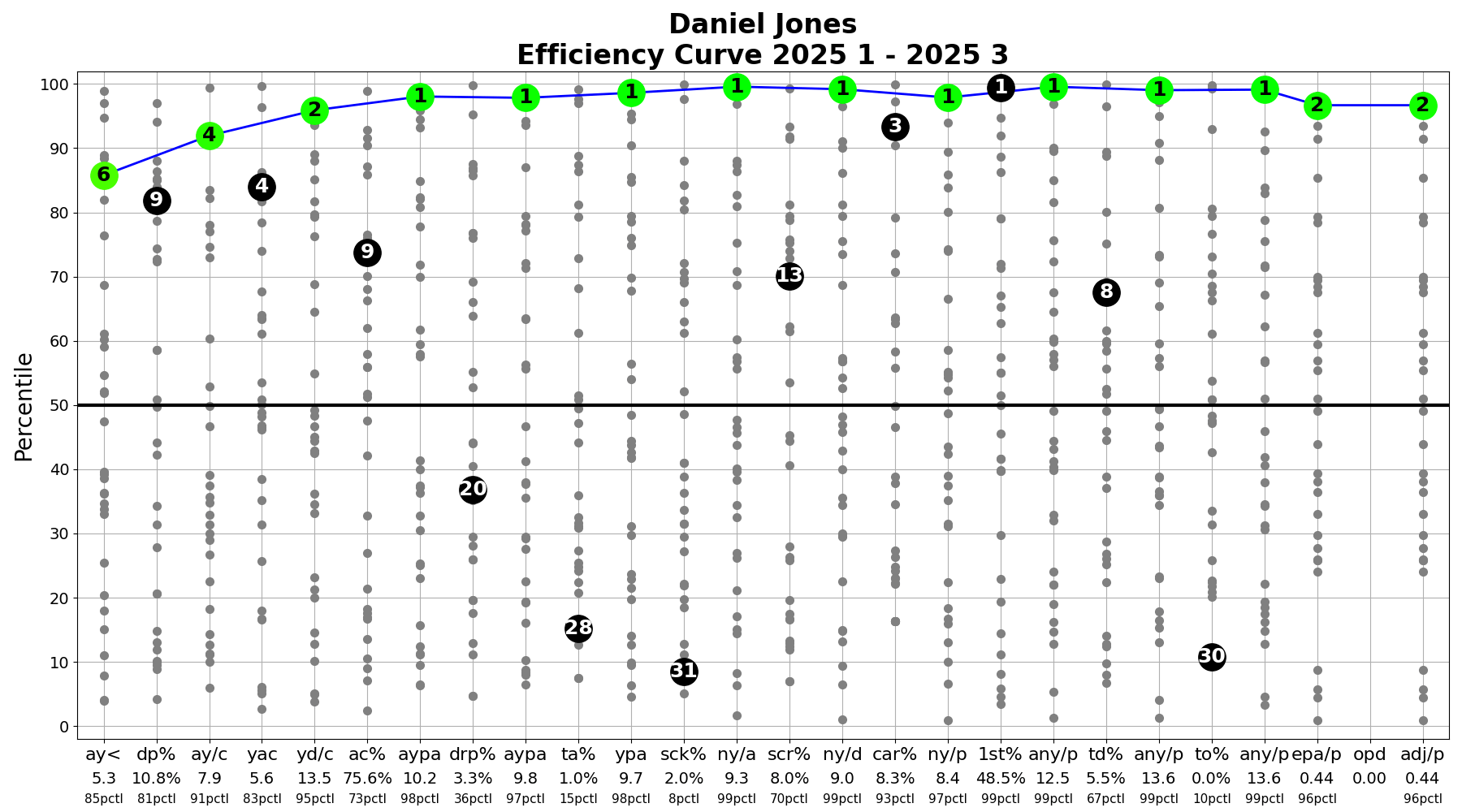 It’s an understatement to say Daniel Jones is off to an excellent start. On the season, he owns the 2nd-highest EPA efficiency in the league, and he’s doing it by ranking near the top in nearly every efficiency metric I track.