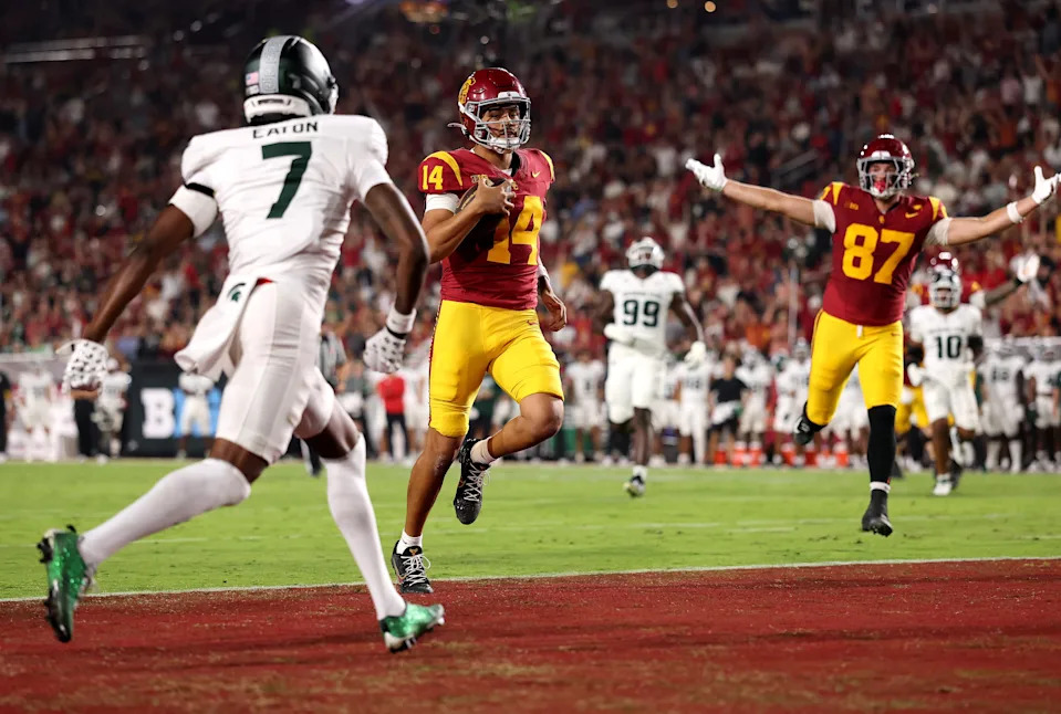 After three relatively uncompetitive contests to open their season, Maiava and USC took their first step up in competition by outlasting a Michigan State team that was 2-1 and looks much improved in year two under head coach Jonathan Smith and quarterback Aidan Chiles. Chiles looks like he’s taken a big step forward, but probably should return to school, when he could be one of the top prospects for the 2027 draft if he continues his current trajectory. Michigan State had the game within one touchdown at the start of the 4th quarter before the Trojans pulled away to close it out.