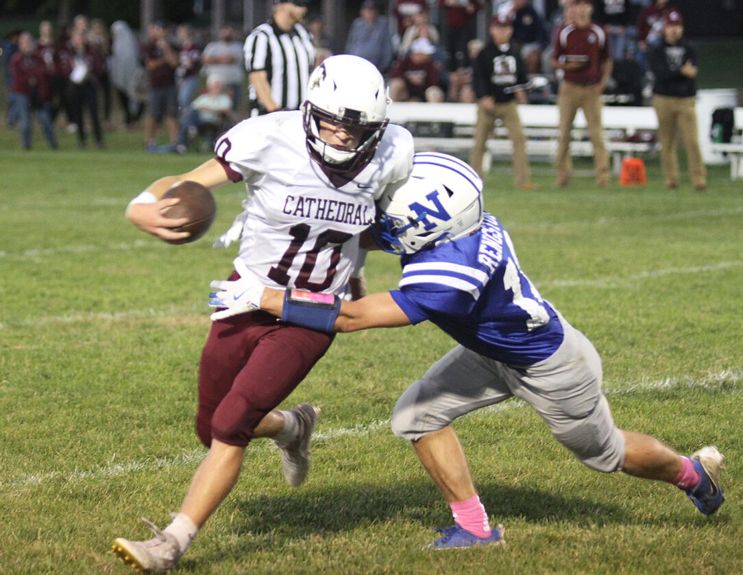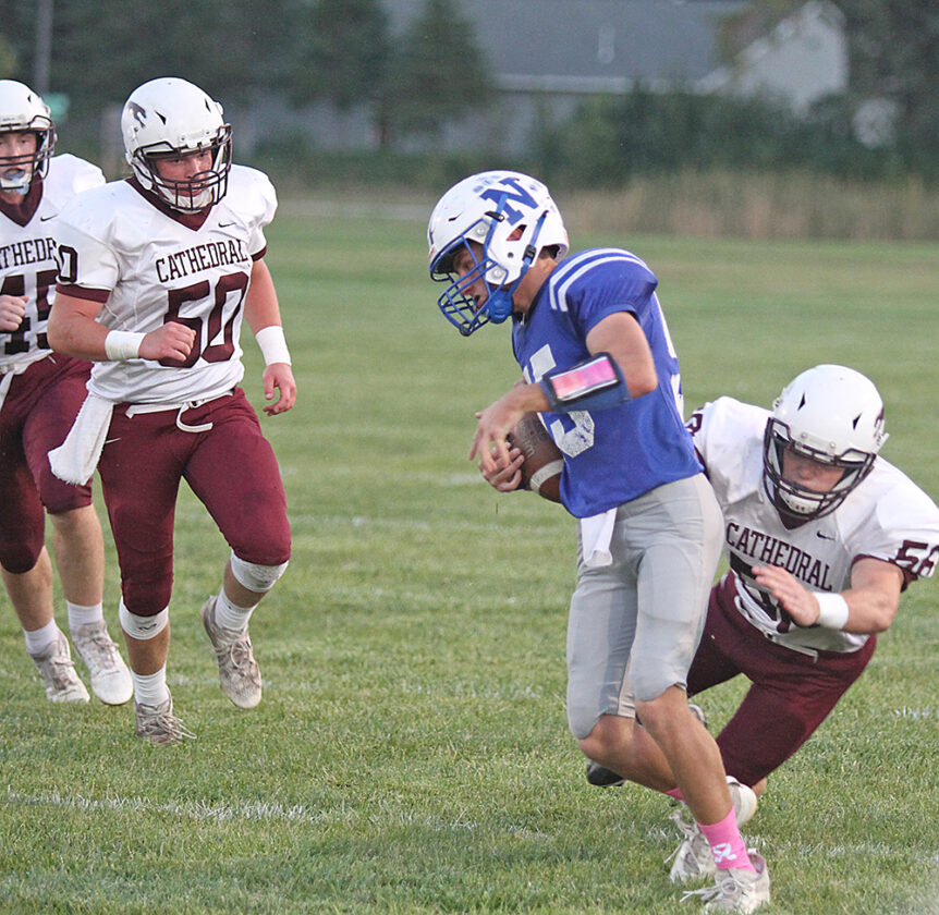 NICOLLET — Up against their biggest passing threat so far this season in the Nicollet Raiders, the New Ulm Cathedral Greyhounds knew how key limiting big plays and controlling the game on the ground would be.