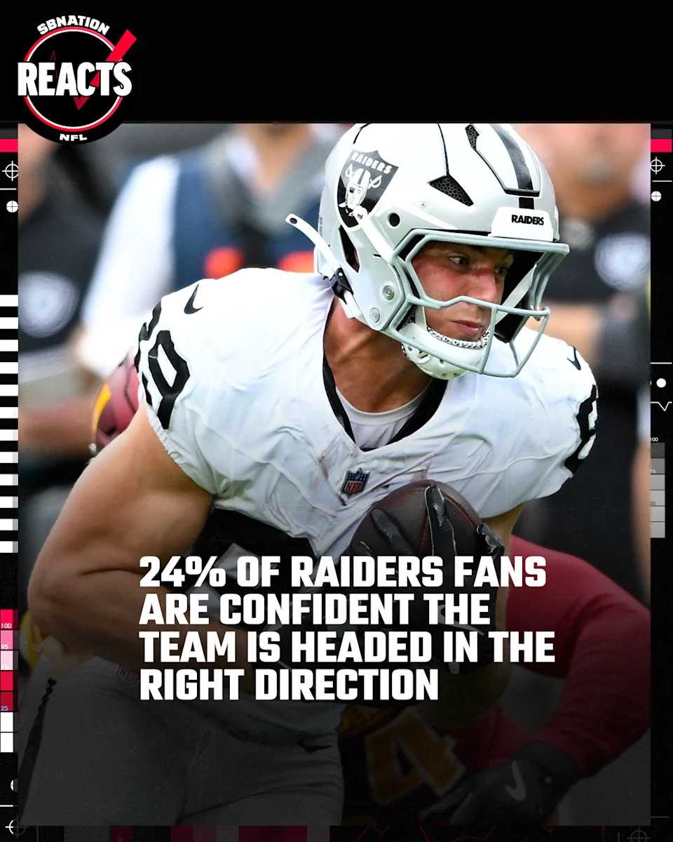 In this week’s SB Nation Reacts, we ask the Raider Nation what their confidence is in the team’s direction. The results are in, and there was a steep drop to 24%.