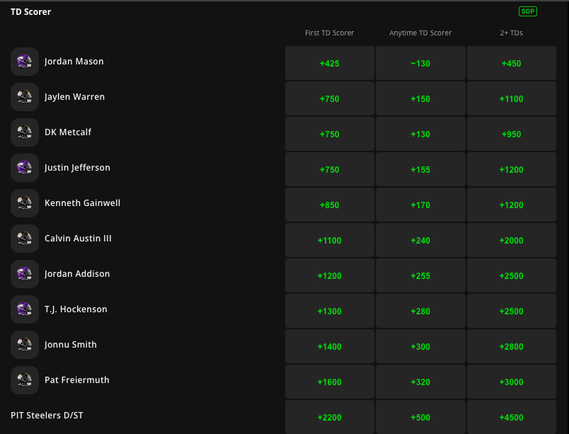Vikings vs. Steelers First Touchdown Scorer Prop Bets