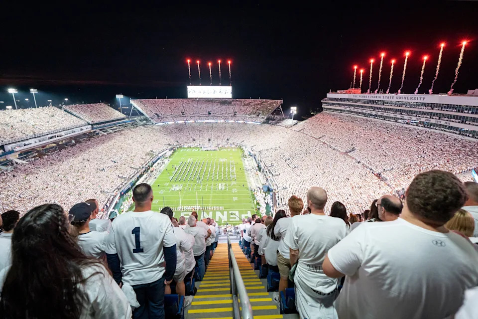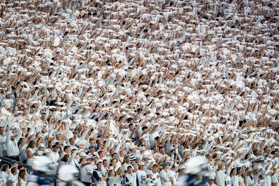 Penn State fans cheer as the Oregon Ducks face the Penn State Nittany Lions on Sept. 27, 2025, at Beaver Stadium in University Park, Pennsylvania.