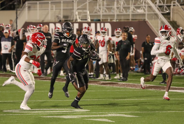 Bears running back Shomari Lawrence runs for a touchdown that was later waived off due to a penalty on Saturday, Sept. 27, 2025, in Springfield. (Photo by Ellie Frysztak)