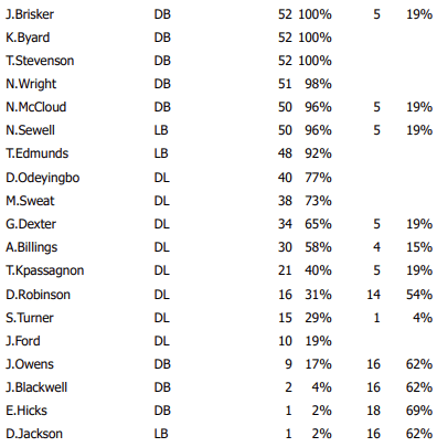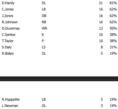 All statistics and snap counts, as well as the accompanying pictures, are taken directly from the NFL’s Game Statistic and Information System.
