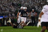 Quarterback Drew Allar (15) runs with the ball during Penn State’s White Out game against Oregon at Beaver Stadium on Saturday, Sept. 27, 2025 in University Park, Pa. The Ducks beat the Nittany Lions in double OT 30-24.
