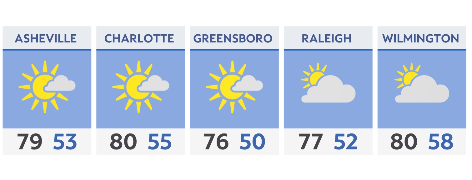 We will probably start Wednesday with some clouds, but they should quickly erode, leading to afternoon sunshine. A stretch of quiet, classic Carolina fall weather will then unfold for the rest of the week.