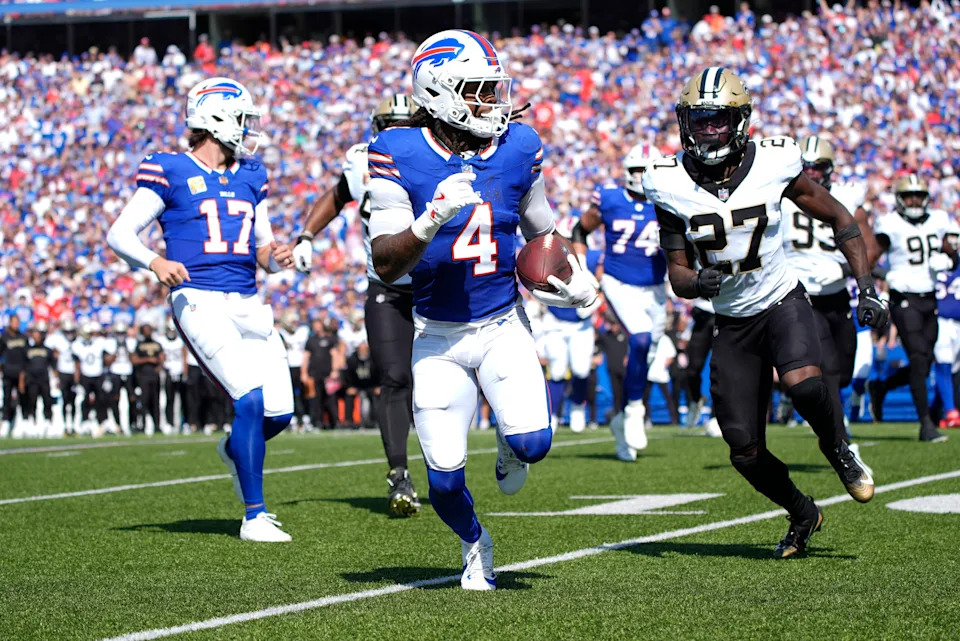 James Cook is showing why he deserves every penny general manager Brandon Beane agreed on paying him from next year on. He’s fully capable acting as the Bills’ offensive heartbeat. Against a Saints run defense ranked 25th in yards per carry allowed (4.8 entering Week 4), Cook exploded for 117 rushing yards on 22 carries (5.3 YPC), marking his third straight 100-yard game. He added 18 yards on three receptions, finishing with 135 total yards from scrimmage, including a 1-yard touchdown score.