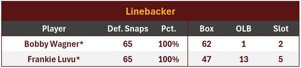 So far this season, Bobby Wagner has been playing well in the pass rush and run support, while Frankie Luvu has been struggling to recapture last season’s AP2 form. This week the roles were somewhat reversed.