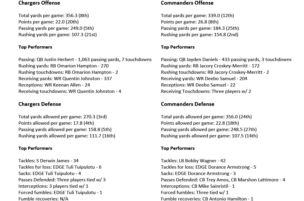 Chargers vs. Commanders By The Numbers