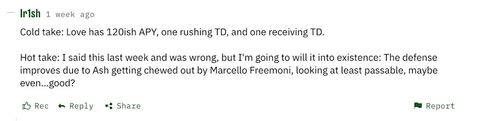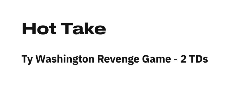 Hand up….Ty Washington has looked way better in the run game, but this was definitely not a breakout performance after he clocked….(checks notes) 0 catches on 0 targets.